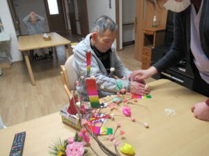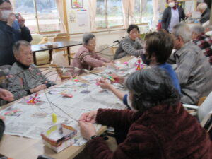 デイサービスは大勢の人が和気あいあいと餅を取りました。