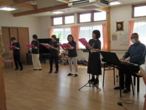 本日、厳美地区で活動されているコーラスグループ「さくら♡さくら」の皆さんが苑を訪れ、慰問演奏会を開いてくださいました。