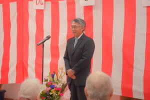 一関市よりご祝辞をいただきました。続いて米寿の方へお祝いを進呈!