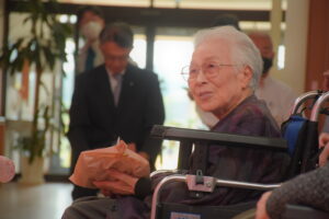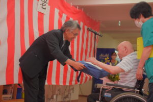 当法人理事長より、あけぼの苑よりのプレゼントを進呈。