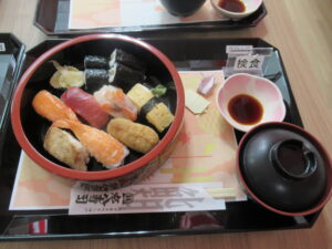 お昼は、皆さんがお待ちかねの桶に入ったお寿司でお祝い。特別感がたまりません💕