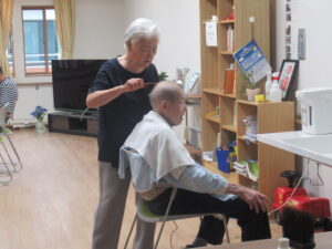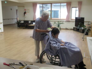 「あけぼの苑」では、身だしなみをさっぱりして、気持ちよくお盆を過ごしていただこうと