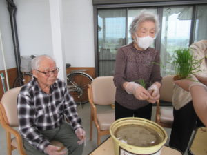 「こうやって押し込むといいんだぞ~!」と指南役もいて、立派に植えることができました!