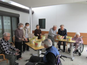 バケツに土を入れて水田に見立て、そこに苗を植える「バケツ稲」の行事をしました。