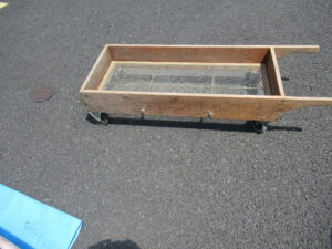 作業中に気になったのが土をふるうこの道具!下に車もついて使いやすそうです♡