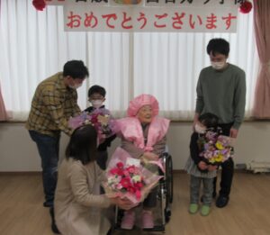100歳の方を中心に、2月・3月生まれの方々のお誕生日を祝いました。