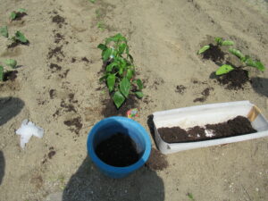 6月5日…畑づくりのために土を掘り起こしました。丁寧に耕します。