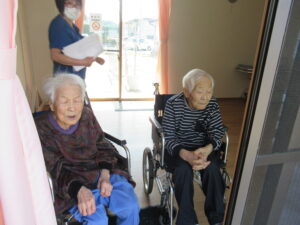 見守り隊の応援を受けて、初収獲を迎えました。利用者さん皆さん、廊下を通るたびに畑の様子を気にしています。成長する姿をみるのが楽しみな様子です。