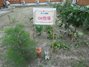 さて、タイトルは今年始めた畑のネーミングです。牧場入口ではウサギキツネがお出迎え!